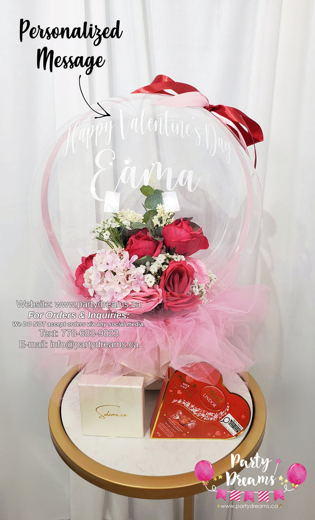 Precious Desire ~ Valentine's Day 2026 Luxe Floral Bubble Balloon Gift Set #V16