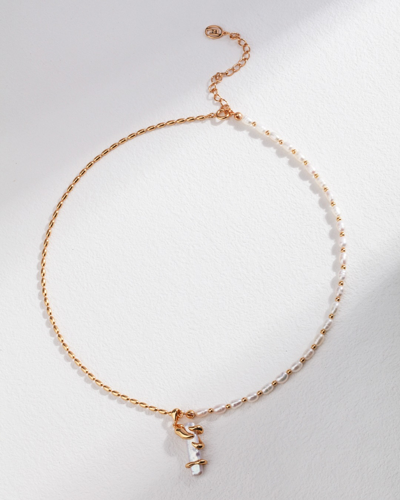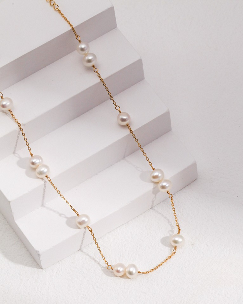 B) Aeris Pearl Necklace - 18K Gold Vermeil finish on 925 sterling silver base, Freshwater pearls, Total Length: 420mm (adjustable length 370-420mm), Weight: approx. 6g
