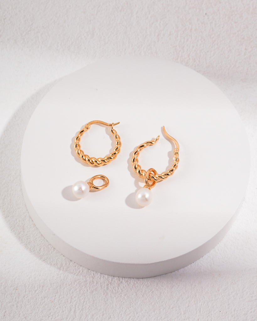 G) Lana Pearl Hoop Earrings - 18K Gold Vermeil finish on 925 sterling silver base, Freshwater pearls (removable drop), Weight: approx. 7g