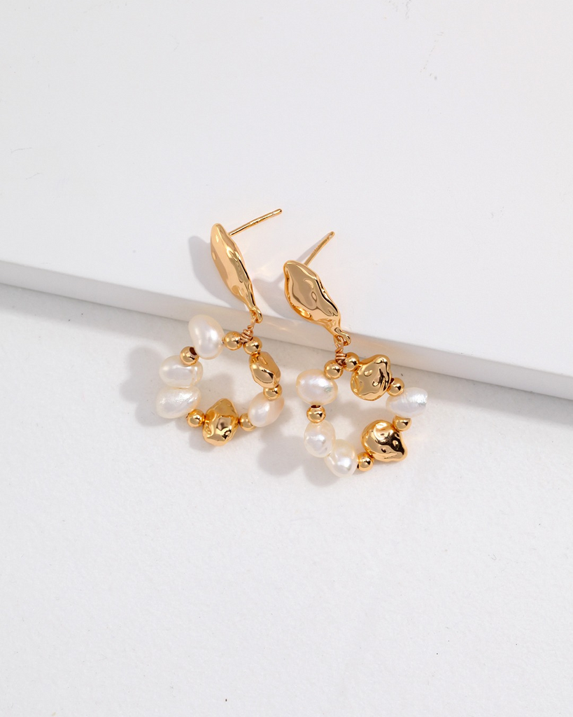 F) Elaria Pearl Loop Earrings - 18K Gold Vermeil finish on 925 sterling silver base, Freshwater pearls, Weight: approx. 9g