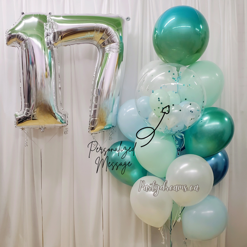 Arctic Élan ~ Number & Bespoke Bubble Balloon Bouquet Set #643