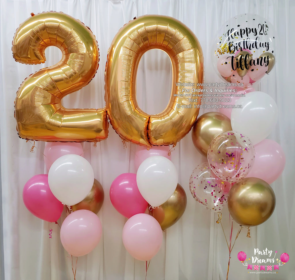 Pink Glow ~ Number & Bespoke Bubble Balloon Bouquet Set #127